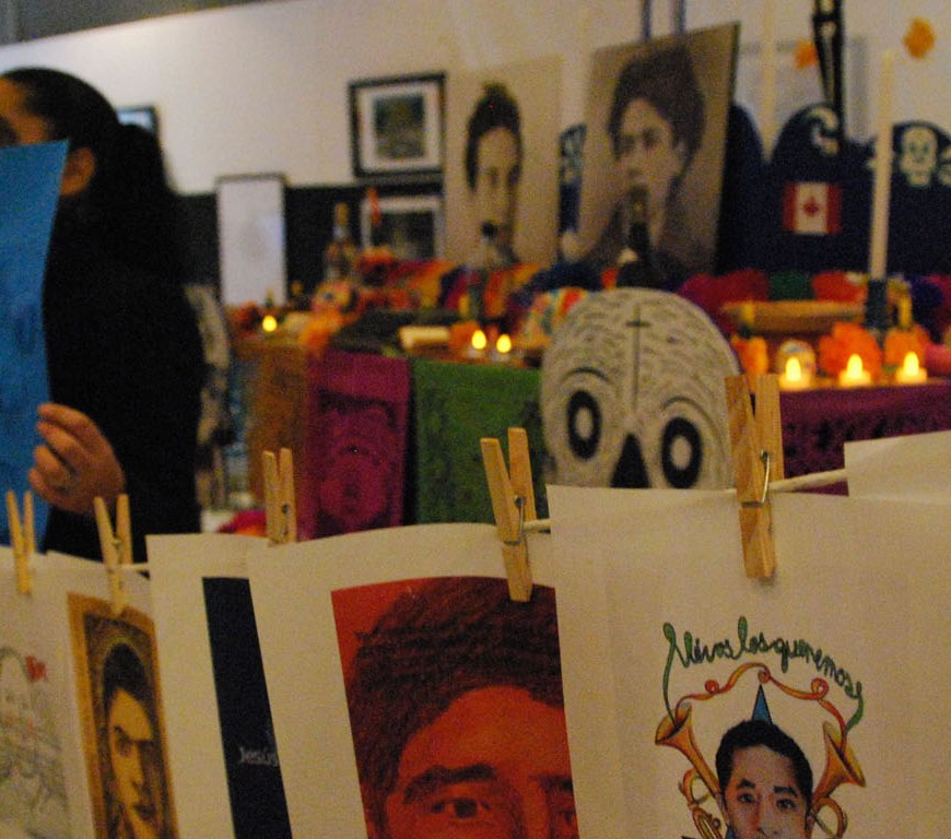 Tous les 2 novembre au Mexique, on célèbre nos morts avec une offrande décorée de papier coloré, de fleurs, de la nourriture traditionnelle, des fruits, des bougies et des photos de nos morts. Le 2 novembre dernier, divers groupes de Montréal, y comprit le Bloc d’artistes du Centre de travailleurs immigrants (CTI), Mexicaines et Mexicains unis pour la régularisation (MUR), ainsi que des étudiants et … Continue reading Occupation de l’Espace Mexique de Montréal x Ayotzinapa / Día de Muertos